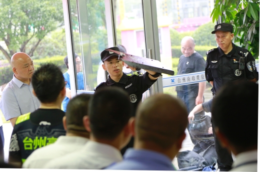 本次活動分成防暴器械使用培訓(xùn)、器械使用練習(xí)和防盜搶應(yīng)急演練三個環(huán)節(jié),以培訓(xùn)和演練相結(jié)合的形式開展,以有效提高一線職工防暴器械使用技能和突發(fā)事件應(yīng)急處置能力。活動邀請了黃巖公安分局巡特警大隊(duì)大隊(duì)長盧健星,該大隊(duì)獵豹突擊隊(duì)隊(duì)員、專職教官盧尚明到場指導(dǎo)。