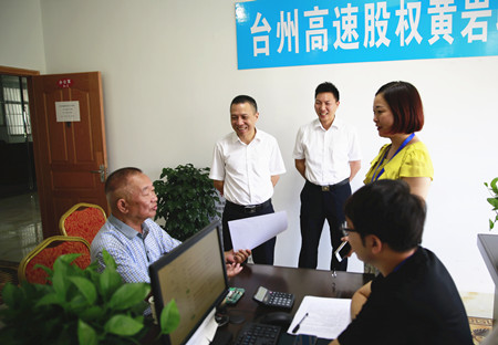 在黃巖收購點,張建平向正在咨詢的有3萬多股權(quán)的股東老王當(dāng)年參股的舉動表示感謝,并就有關(guān)股權(quán)轉(zhuǎn)讓意義進行解釋,老王興奮地表示,“當(dāng)時是看到地委、政府領(lǐng)導(dǎo)都帶頭募捐,很是感動,于是就積極響應(yīng)號召,把手中的錢投到臺州高速公路建設(shè)中來。現(xiàn)在臺州市委市政府給我們提供了這么好的機會,股權(quán)轉(zhuǎn)讓后我能收益這么多,相對存入銀行或者民間借貸,收益更可觀,更安全保險。因此,我第一個表示贊成,如果可以,我今天就轉(zhuǎn)讓股權(quán)。”