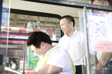 圖為集團副董事長、總經(jīng)理張建平在溫嶺西收費崗亭檢查