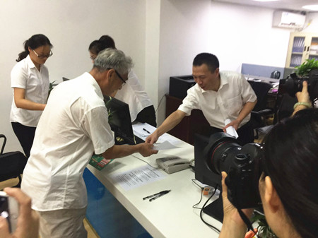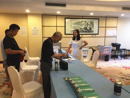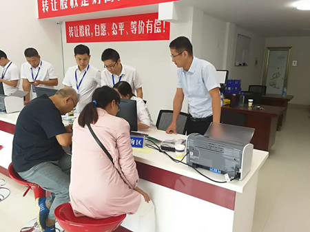 圖為集團副董事長、總經(jīng)理張建平在椒江收購點為股東服務