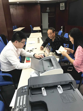 戴著一副黑框眼鏡,憨實(shí)魁梧的身形,說話輕言慢語。據(jù)說,某天下班后,還坐在椅子上打電話,一臉溫柔,竊竊私語,同事一直以為他在談戀愛,這打完了電話,才知道是接到股東的電話了,跟對(duì)方在解釋股權(quán)收購政策呢。 在股權(quán)流動(dòng)收購點(diǎn),小李是電腦操作人員,所以也不大參與解說工作。只是那天正好一位阿婆坐在了電腦對(duì)面,說話之間才知大字不識(shí),是聽鄰居說的,就自己摸到這里了。正好手里也空了,李騰飛頓頓身子,放松下來,以黃巖特有的吳言儂語跟阿婆解釋了十幾分鐘,果然,白凈的臉上是一臉的和氣,沉穩(wěn)又實(shí)在,確實(shí)是傳說中的暖男一枚呀。末了,幫阿婆代簽了字,讓阿婆按了手指印。 但是,在工作的時(shí)候,小李讓我們見識(shí)到了“騰飛”的效果。流動(dòng)點(diǎn)只設(shè)一臺(tái)筆記本電腦,線上操作都?xì)w他,在大溪鎮(zhèn)政府,來的股東有百十號(hào),流動(dòng)小組包括駕駛員何杰靚迅速開展了流水作業(yè)。此時(shí)此刻,小李那一雙肥白的大手在小巧的鍵盤上十指翻飛,靈活敏捷,操作如行云流水,打印機(jī)刷刷地響,不停飛出一份份協(xié)議,傳到下一個(gè)工作人員這里。這才知道,每一個(gè)人的名字都是名副其實(shí)的,“騰飛”的含義是在這里體現(xiàn)的呀。 鄭蔚