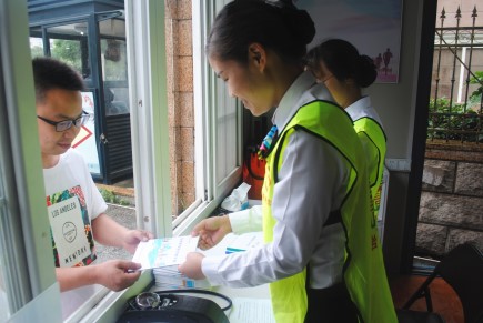臺(tái)州收費(fèi)所志愿者參加“臺(tái)州志愿者服務(wù)亭”志愿活動(dòng) 6月15日上午,臺(tái)州收費(fèi)所志愿者服務(wù)隊(duì)參加由黃巖區(qū)團(tuán)委組織的“臺(tái)州志愿者服務(wù)亭”志愿服務(wù),隊(duì)員們積極主動(dòng)、文明有禮,為市民提供各類(lèi)便民服務(wù)?! ?/p> 在位于黃巖區(qū)自力電影院對(duì)面的志愿服務(wù)亭里,臺(tái)州收費(fèi)所志愿者服務(wù)隊(duì)的成員們,一邊學(xué)習(xí)如何操作充氣設(shè)備,一邊熟悉服務(wù)內(nèi)容,并向市民發(fā)放《臺(tái)州市市民文明手冊(cè)》等。對(duì)于自己的志愿者服務(wù)工作,大家一臉自豪。就在隊(duì)員們分頭忙碌時(shí),來(lái)了兩位外地口音的路人,詢問(wèn)附近有沒(méi)有網(wǎng)吧。大家熱心指路,但這兩人還是一臉茫然,志愿者盧蒙莎就熱心地陪著兩人,穿過(guò)馬路,在一個(gè)巷子里的找到網(wǎng)吧。志愿者金愷,今天早班一下班,顧不得休息,就急著趕到了服務(wù)亭,加入志愿者服務(wù)的隊(duì)伍。