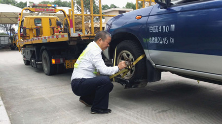 圖為工作人員參加清障車托舉輪胎拖曳比賽 早在節(jié)前,施救中心就未雨綢繆,全面檢查中心六輛清障車,主動聯(lián)系廠方并要求派專員上門服務(wù)。其中對清障車輛的液壓系統(tǒng)進(jìn)行了檢查維護(hù),添加了液壓油,更換了漏的液壓泵,修理了滲油的油缸和油管接頭,對啟動困難的清障車輛更換了電瓶和馬達(dá),對水溫過高的發(fā)動機(jī)更換了電子風(fēng)扇,并對水箱進(jìn)行清洗,確保節(jié)日運行性能的良好,杜絕了一切安全隱患。 今年國慶、中秋雙節(jié)合并使得假期更長,并且黨的十九大也在10月份召開。為此,施救中心高度重視,不僅全面檢查清障車輛,而且召集全體人員廣泛聽取應(yīng)急應(yīng)對意見,強調(diào)要頂住壓力,克服困難,團(tuán)結(jié)一心,打贏這一次艱苦的攻堅戰(zhàn)。中心要求管理人員加強駐勤值班,及時掌握路況信息。一線人員不請假,不調(diào)休,加班加點隨時待命,聽候指揮,同時采取就近用餐、提前布控等措施,為保暢道路做好萬全準(zhǔn)備。