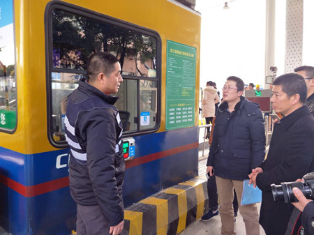 圖為收費(fèi)站現(xiàn)場觀摩培訓(xùn)現(xiàn)場 據(jù)悉,該支付方式即將在全省高速公路378個收費(fèi)站全面實(shí)行。 日前,省公路管理局印發(fā)了《全省高速公路通行費(fèi)全面支持支付寶移動支付實(shí)施方案》,標(biāo)志著全省高速公路通行費(fèi)將全面支持支付寶移動支付。在前期滬杭甬高速公路試運(yùn)行支付寶移動支付通行費(fèi)基礎(chǔ)上,省公路局聯(lián)系網(wǎng)絡(luò)公司已進(jìn)一步完善了收費(fèi)系統(tǒng),計劃在2018年3月前全面啟動。目前,支付寶公司已陸續(xù)在全省高速公路收費(fèi)站進(jìn)行相關(guān)設(shè)備安裝。