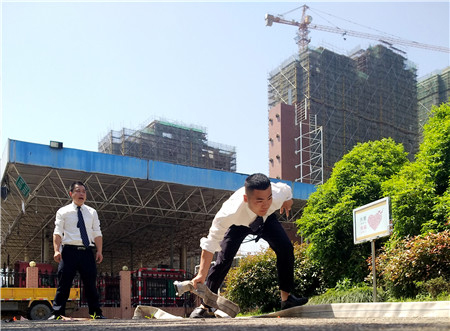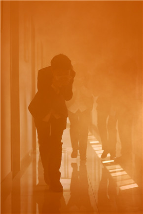 該演練模擬了生活樓發(fā)生火災(zāi),員工一發(fā)現(xiàn)火情就立即撥打了報(bào)警電話。參加演練人員聽到警報(bào)聲后,迅速拿起打濕的毛巾捂住口鼻,手扶墻體或樓梯扶手,俯身低姿從三樓或二樓,向安全通道有序撤離。全體人員不一會(huì)就疏散到了安全地帶,同時(shí)連接好消防水帶,迅速跑至火源附近,對(duì)準(zhǔn)火源有效滅火。