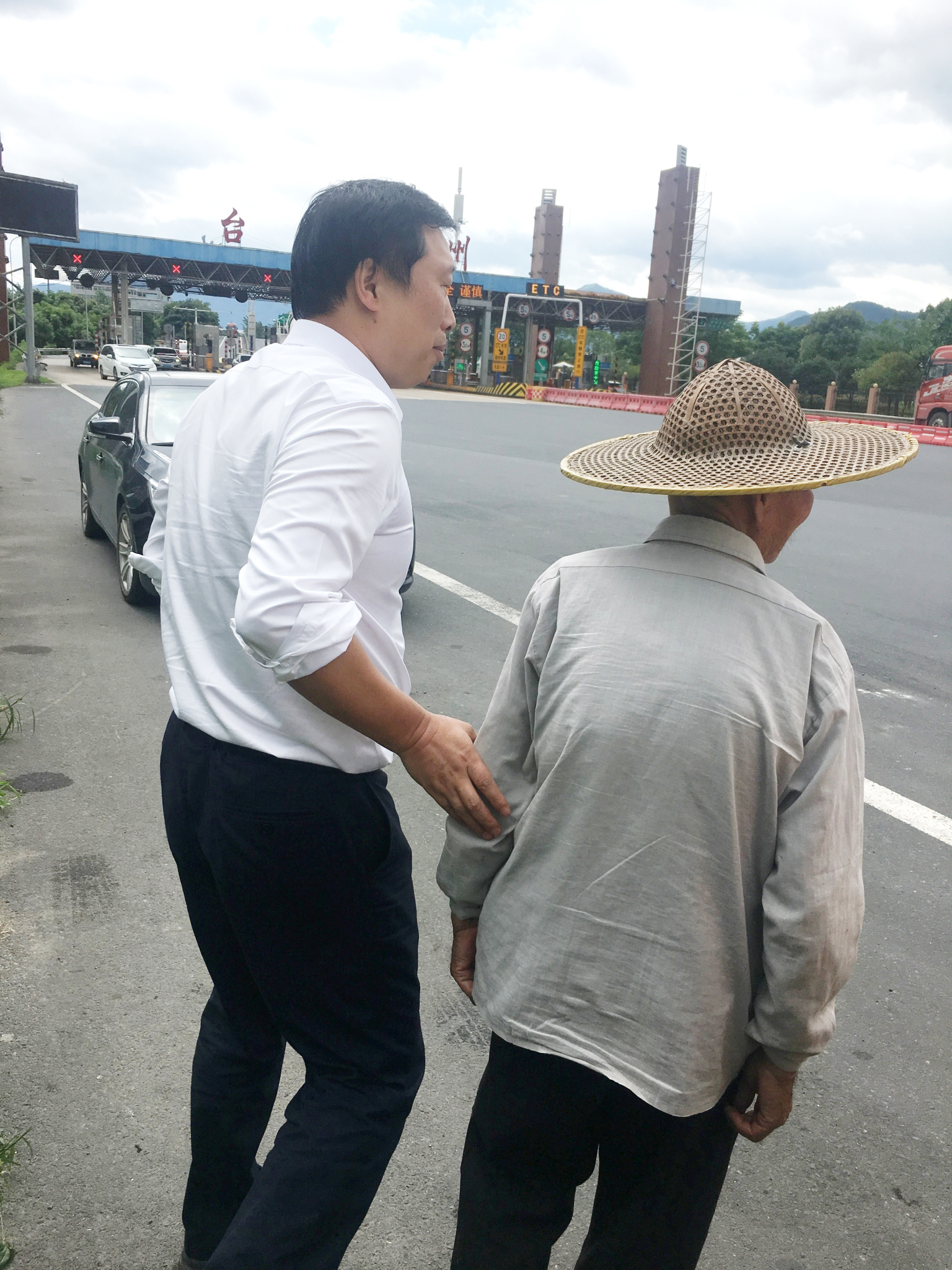 7月19日下午1點10分許,工程部機電設(shè)備維養(yǎng)中心在臺州南收費所完成維養(yǎng)任務(wù)返回中心途中,發(fā)現(xiàn)寧向距離該所1公里左右的高速路上有一老人戴著涼帽正在應(yīng)急車道內(nèi)行走。此時路面車輛速度非???,情況十分危險。見此情況后,中心隊員立即下車詢問情況。經(jīng)了解,該名老人已有70多歲,家住院橋東鑒村,準(zhǔn)備去往橫涇后岸村親戚家,后因迷路、不識字誤上高速,直到被中心隊員發(fā)現(xiàn)。
