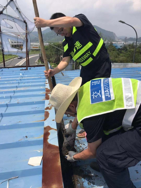 為切實做好今年第9號臺風(fēng)“利奇馬”各項防御工作,確保臺風(fēng)期間轄區(qū)高速公路安全暢通,工程部機電設(shè)備維養(yǎng)中心提前對集團所轄路面及收費站機電設(shè)備進(jìn)行了全面部署,消除安全隱患,全力防范強臺風(fēng)。 全面清除收費頂棚及下水管道垃圾。集團沿線收費頂棚經(jīng)過幾次的施工裝修,遺留了一些裝飾垃圾,如不及時清理一旦掉入排水溝或下水管道,勢必會造成頂棚漏水,影響下面人員及設(shè)備安全。8月7日,維養(yǎng)中心組織班員在登高車協(xié)助下,頂著炎炎烈日,利用垃圾夾、鐵鍬等工具對沿線收費站收費頂棚上方垃圾、排水溝中的淤泥進(jìn)行了逐一清理,并重新鋪設(shè)排水溝上面的防護(hù)網(wǎng),防止臺風(fēng)期間吹來的一些塑料紙袋等輕型垃圾再次堵塞下水道。