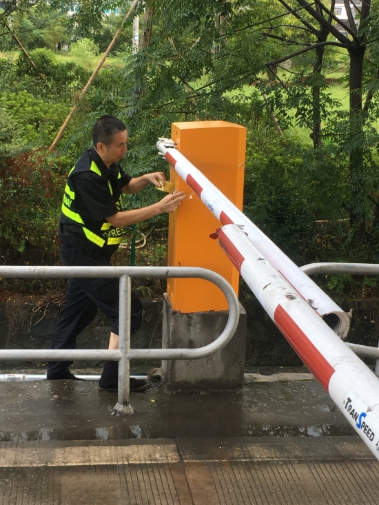 圖為工作人員在對欄桿機作防水處理 加強應(yīng)急值守確保信息暢通。在防臺期間,中心實行常規(guī)值班和應(yīng)急值班雙值班制,嚴(yán)格落實24小時應(yīng)急制度。要求全體人員密切關(guān)注與“利奇馬”有關(guān)的信息,隨時掌握臺風(fēng)動態(tài)和道路狀況,加強與收費站、隧道所的溝通協(xié)作,實現(xiàn)信息及時共享,一旦出現(xiàn)緊急情況,要迅速啟動應(yīng)急預(yù)案,有條不紊開展應(yīng)急處置工作,確保高速公路安全暢通,最大限度避免和減少人員財產(chǎn)損失。 項寅曉