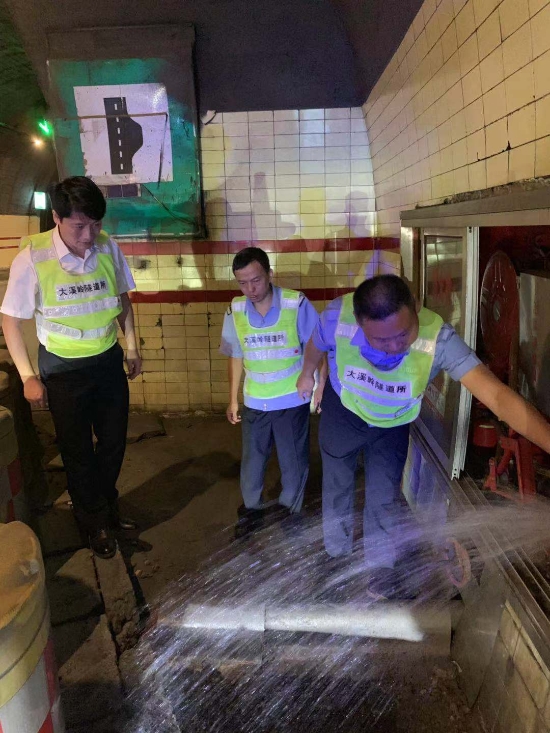 圖為檢查隧道內消防設備