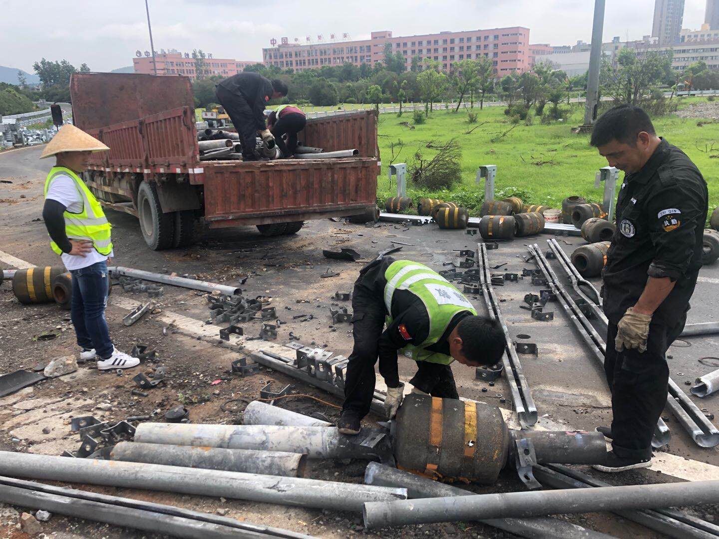 圖為各部門小組人員監(jiān)督現(xiàn)場 此次廢舊物資數(shù)量大,護(hù)欄板因高溫沖擊造成了強(qiáng)烈的扭曲變形,這無疑給裝載增加了難度。大家和裝載人員一起想辦法,以便更好地裝車安全抵達(dá)院橋磅秤站。盡管天氣燥熱、環(huán)境嘈雜,可絲毫未影響小組成員的工作熱情,因時間倉促,所有人利用午休時間加快工作進(jìn)度,一直堅守現(xiàn)場。在趁車裝載間隙,兵分兩路,一隊現(xiàn)場盯裝車,另一隊由林軍帶領(lǐng)趕往塘嶺廣場、臺州收費(fèi)所,對阻塊等廢舊物品進(jìn)行勘察,隨后又馬不停蹄趕往院橋磅秤站匯合監(jiān)督過磅環(huán)節(jié)。 直至下午5點(diǎn),大家終于結(jié)束工作。據(jù)統(tǒng)計,此次共處理廢棄物資約15噸。 毛譯聆
