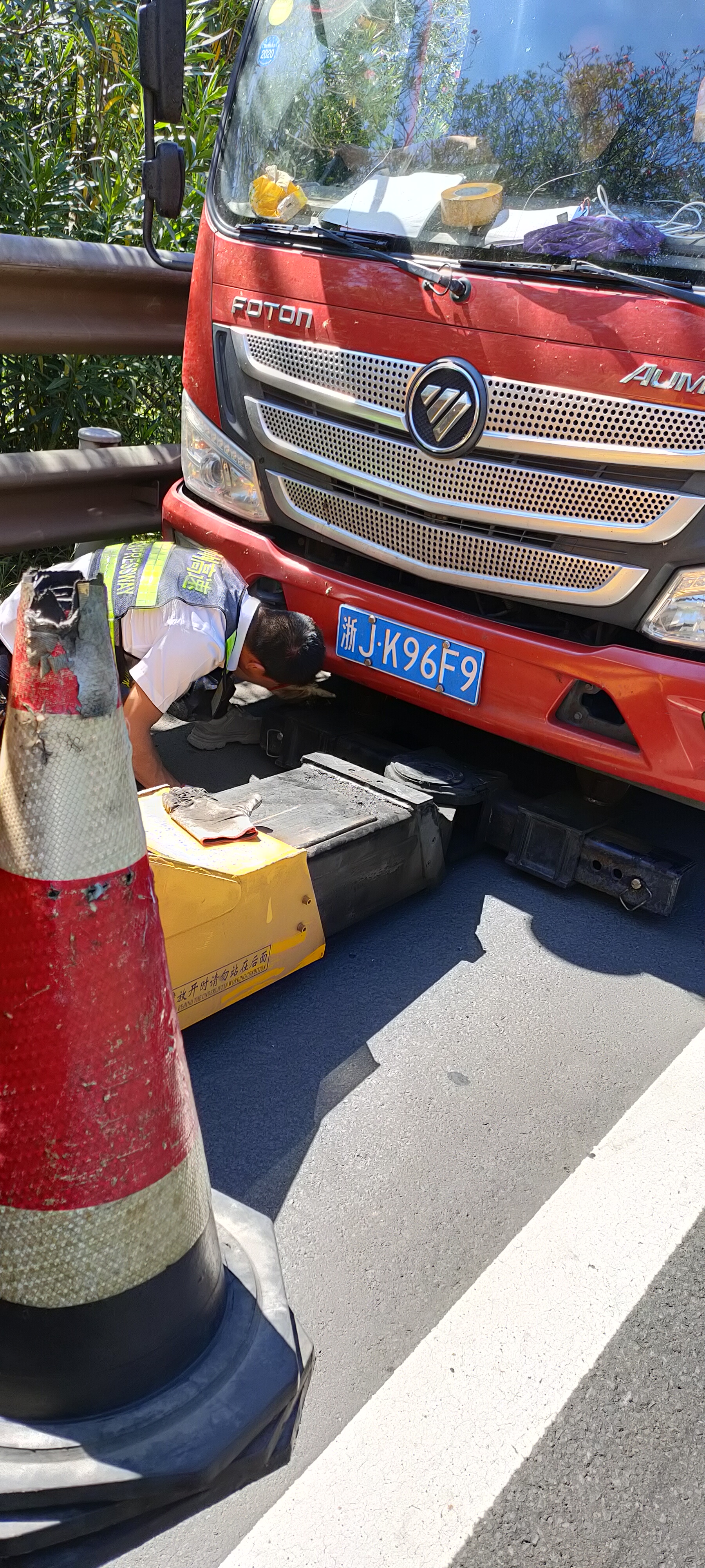 當(dāng)班的是駕駛員阮文標(biāo)和輔查員王順益,而此前兩人已經(jīng)真切地感受到高溫的可怕。9點(diǎn)40時(shí),有一輛小貨車拋錨在甬臺(tái)溫高速寧向距離大溪所不到三公里的地方。兩人到達(dá)救援現(xiàn)場(chǎng)最直觀的感受就是無(wú)法呼吸。