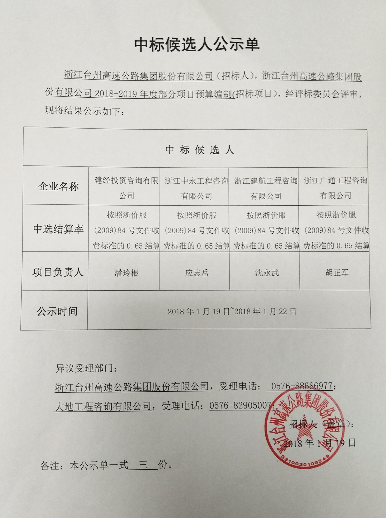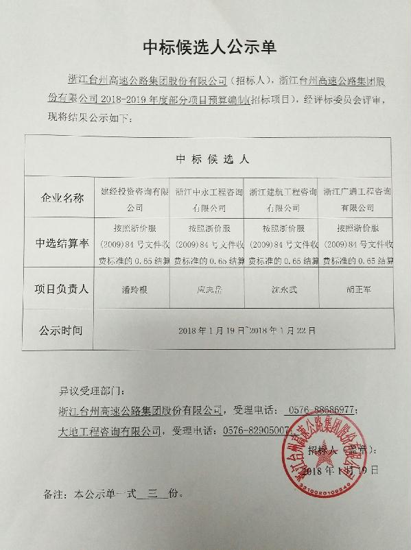 2018-2019年度部分項目預(yù)算編制中標候選人公示單