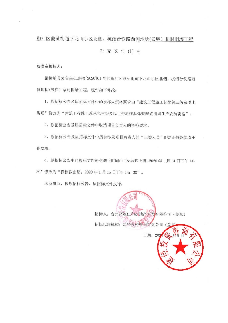 椒江區(qū)葭沚街道下北山小區(qū)北側(cè)、杭紹臺(tái)鐵路西側(cè)地塊(云廬)臨時(shí)圍墻工程補(bǔ)充文件