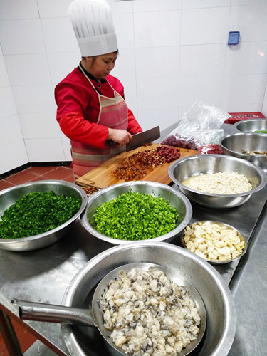 臺(tái)州的元宵節(jié)是從正月十四開始的。十四吃咸羹、十五吃甜的山粉糊。下午兩點(diǎn),臺(tái)州所的食堂大姐們就開始忙活了。 早在前幾天,來自臨海的食堂大姐利花,就開始為臺(tái)州所的元宵節(jié)準(zhǔn)備食材清單。在她的家鄉(xiāng)四岔,咸的糟羹里是要放海蠣的,她說一到正月十四,滿街都會(huì)有剛從牡蠣殼里現(xiàn)挑出來閃著新鮮青色的海蠣肉賣,但在黃巖,找遍菜場(chǎng),只有冰凍的泛著白光的海蠣肉,也不是每天都有賣,有時(shí)還要靠運(yùn)氣才能買到。利花有些無奈,她想,都是離海不遠(yuǎn)的地方,為什么就沒有新鮮的海蠣?她也許不知道,在黃巖一帶,大家還是喜歡吃甜的山粉糊,所以不需要海蠣。