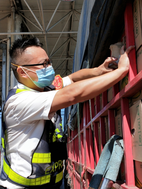 檢查綠農(nóng)車,遇到攀爬驗貨時,車輛欄桿因高溫炙烤至少在四五十度以上,臺州南收費(fèi)所班長周冬子笑著說:“現(xiàn)在的車欄桿都‘辣手’了,腳底板也像踩了‘風(fēng)火輪’。” 話音還未落,只見他蹭蹭幾下,已然爬上貨車,一邊檢查貨物一邊用袖子蹭掉臉上豆大的汗珠,被曬得黝黑發(fā)紅的皮膚在烈日下格外醒目。綠農(nóng)車開走后,他顧不上滿身汗水,拿起了掃把開始打掃灑落在車道上的綠農(nóng)產(chǎn)品。因為他知道,這些灑落的農(nóng)產(chǎn)品,如不及時清理,在太陽曝曬后將會更加刺鼻,影響收費(fèi)站的形象。 熱浪滾滾,卷不走收費(fèi)員們工作的熱情;夏日炎炎,燃不盡收費(fèi)員們堅守的意志。他們用執(zhí)著在高溫下書寫愛崗敬業(yè),用責(zé)任和擔(dān)當(dāng)保障著高速的平安暢通。 項丹穎