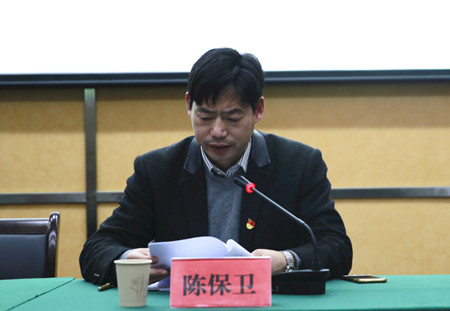 圖為集團黨委委員、副總經(jīng)理陳保衛(wèi)傳達文件精神