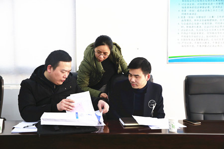 圖為檢查組檢查財務(wù)臺賬現(xiàn)場