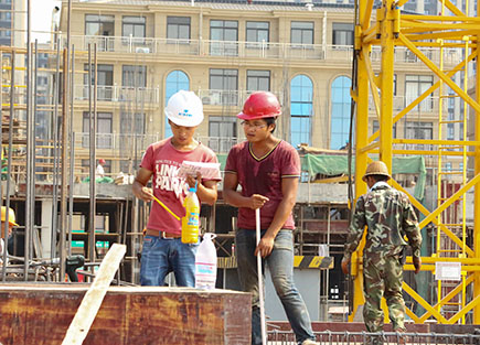 一周以來,我市出現(xiàn)持續(xù)高溫天氣,熱浪侵襲。集團下屬子公司仁和房產(chǎn)文鼎苑樓盤施工場地上,白天溫度高達38℃,地表溫度達60多℃,頭頂明晃晃的太陽,腳踩炙熱的鋼板和腳手架,兩百多名工人正在忙碌作業(yè)中。他們頭戴安全帽,隨身攜帶一個大容量水壺,脖子上再掛一條濕毛巾,這是他們當(dāng)中大部分人的標準解暑“裝備”。