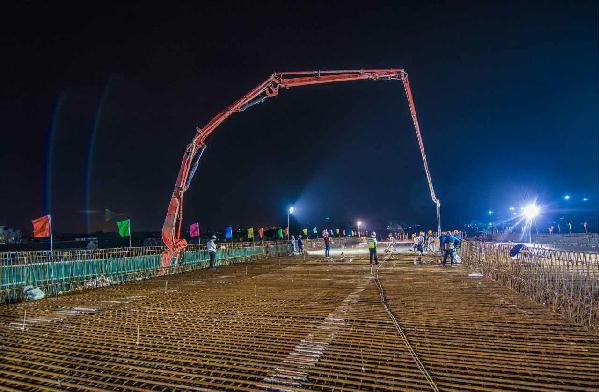 圖為4月21日凌晨,內(nèi)環(huán)路8#立交第二聯(lián)箱梁頂板澆筑場景。鐘 彪攝 8#立交工程位于黃巖區(qū)紅三村和紅四村,主線橋8#立交全長1300多米,是臺(tái)州市首座全互通四層立交。東接九峰公園,西臨黃巖主城區(qū),上跨二環(huán)東路,南北連104國道,作為內(nèi)環(huán)路唯一一個(gè)位于城鄉(xiāng)接合部關(guān)鍵節(jié)點(diǎn),復(fù)雜的施工環(huán)境,繁瑣的交通組織,給工程的正常推進(jìn)帶來了嚴(yán)峻的考驗(yàn)?!拔覀?nèi)w參建人員根據(jù)現(xiàn)場情況不斷優(yōu)化方案,細(xì)化措施,狠抓落實(shí),連續(xù)作戰(zhàn),保證每月完成既定任務(wù)指標(biāo)?!?#立交項(xiàng)目現(xiàn)場負(fù)責(zé)人金小琳表示。 目前,8#立交主線橋梁順利貫通,離11月11日主線通車的目標(biāo)又邁進(jìn)了一大步。據(jù)臺(tái)州高速市政建設(shè)投資有限公司副總經(jīng)理何翔介紹,接下來的工作重心是在主體結(jié)構(gòu)完工的基礎(chǔ)上抓緊匝道及附屬構(gòu)筑物的施工,爭取讓臺(tái)州市民能盡早用上這條民心路。 (本文轉(zhuǎn)自《臺(tái)州日?qǐng)?bào)》2017年4月22日第01版) http://paper.taizhou.com.cn/tzrb/html/2017-04/22/content_794805.htmfrom=groupmessage&isappinstalled=1