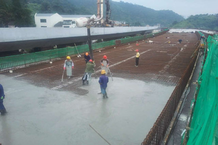 內(nèi)環(huán)路6#立交主線橋主體結(jié)構(gòu)順利完工 6月18日,內(nèi)環(huán)路6#立交BB2主線橋完成了第一聯(lián)箱梁頂板的混凝土澆注,標志著6#立交主線橋主體結(jié)構(gòu)全部完工。