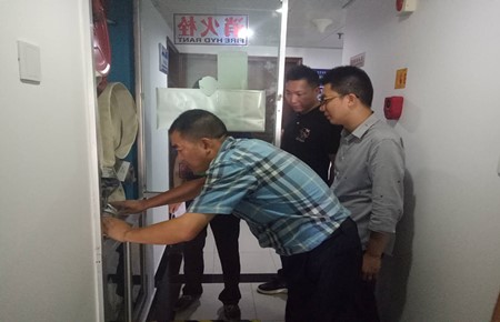 圖為檢查人員檢查辦公室用電安全 檢查結果表明,市政公司所處的天和大廈17樓總體消防安全情況良好,未發(fā)現(xiàn)使用大功率違禁物品。檢查組在檢查過程中還不忘積極向工作人員宣傳一些日常安全小常識,指導他們如何有效避免辦公室火災發(fā)生。